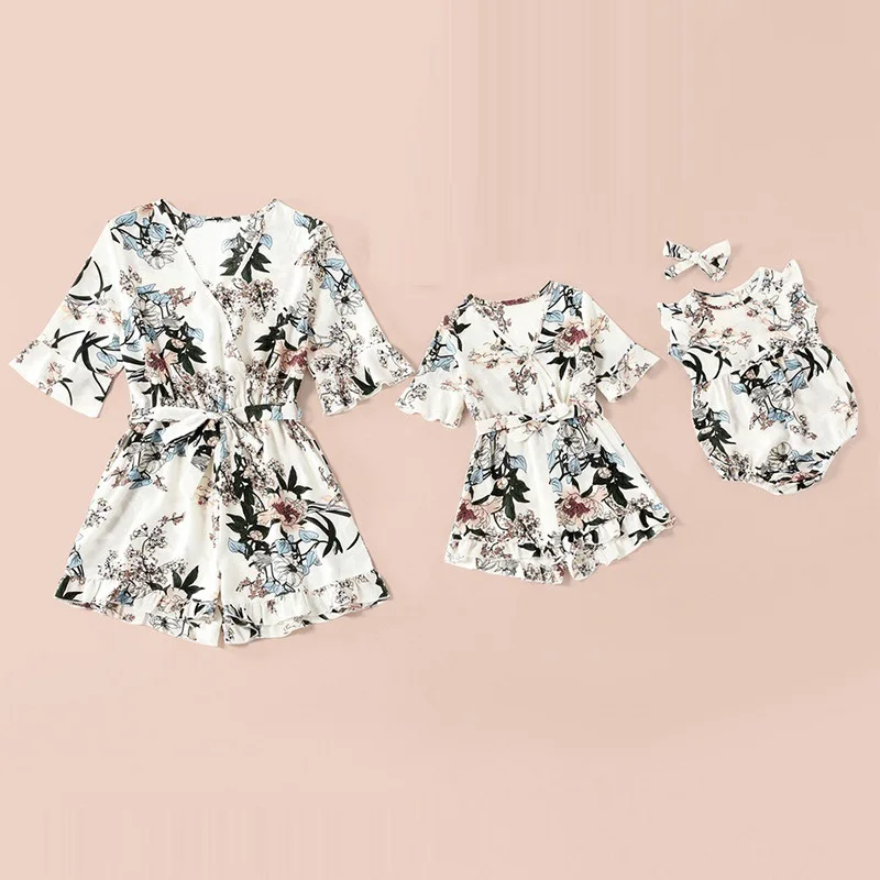 Conjunto familiar de una pieza para madre e hija, monos para mamá y yo, vestidos, ropa de flores para mujer, niña, Mono para bebé, Pantalones vino después de 16 días, se parece a las piezas originales, gracias
