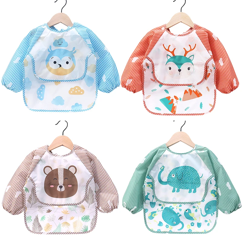 Name: Lindo bebé niños Baberos con largo manga impermeable colorido infantil niños Bandana niño destete alimentación delantales cosas